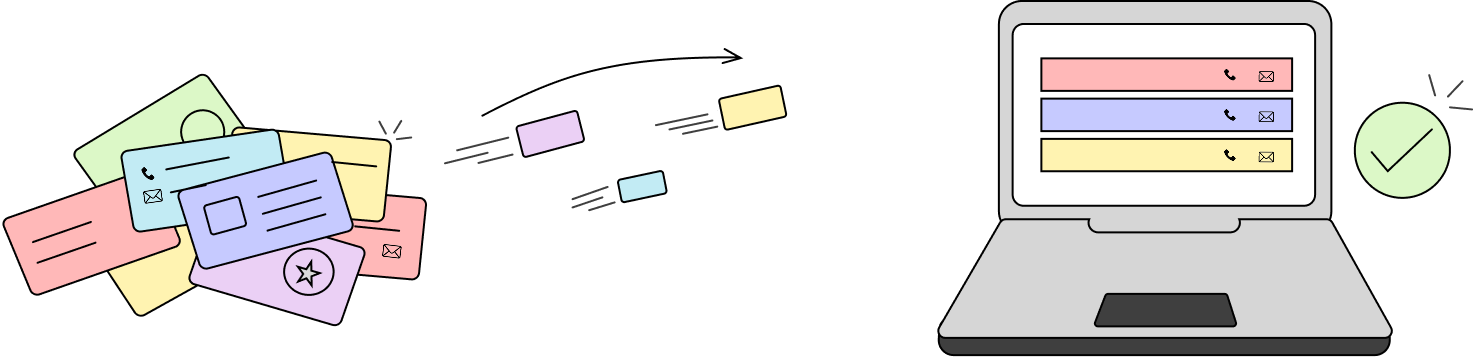 Simply snap and send a photo of a business card. Our AI-Powered OCR instantly reads the data no app or manual typing required.
